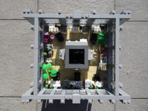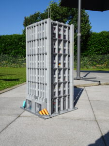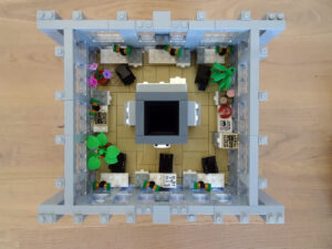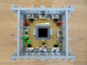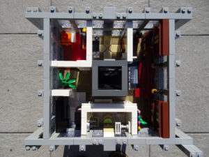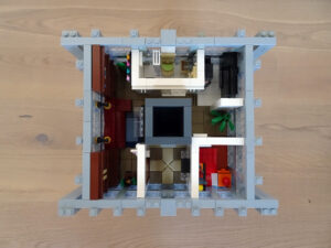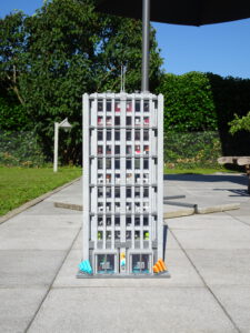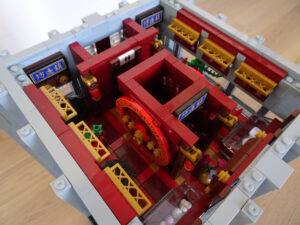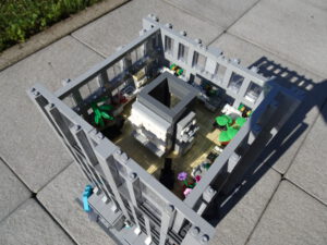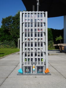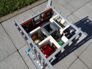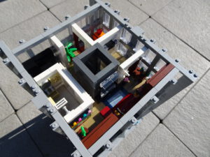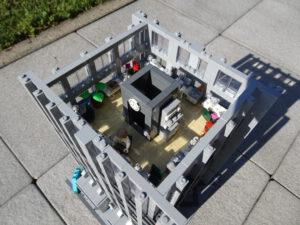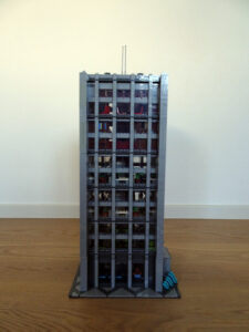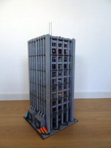 Ein weiteres Hochhausprojekt, das sich designmäßig an New-Yorker Hochhäusern aus den 80igern anlehnt. Teile der Fassadengestaltung habe ich vom guten alten WTC übernommen. Statt der großen Standard-Fensterrahmen habe ich diesmal versucht, einfache Glaselemente zu verwenden, was der Fassade einen kleinteiligeren Look gibt. Im Erdgeschoss ist eine Art Brand-Store für Sportartikel und Bekleidung (möglicherweise erkannt man die Logos am Eingang), darüber ein Fitnessstudio. Im dritten und vierten Stock befindet sich ein Pharma-Labor mit Forschungsarbeitsplätzen. Im fünften habe ich ein kleines Apartment eingebaut und im sechsten befindet sich ein traditionelles Asia-Restaurant.