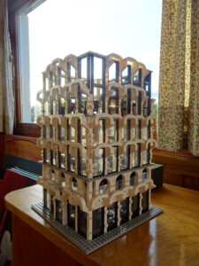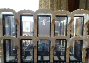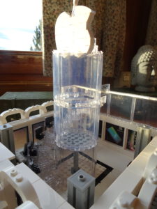 Ich habe ein Hochhausprojekt begonnen. Angeregt dazu wurde ich von einem alten Alternativ-Klemmbausteinset, das ich online gebraucht gekauft habe. Die Idee mit dem Apple-Store fand ich gut, der Rest des Gebäudes hat mir aber nicht gefallen, also habe ich Teile davon übernommen und das als Basis für ein Stadthochhaus benutzt. In Zukunft schwebt mir eine Art Skyline mit mehreren verschieden hohen Hochhäusern vor. Das Fassaden-Design soll sich frei an Hochhäusern des Klassizismus bzw. am Übergang zur Moderne orientieren.